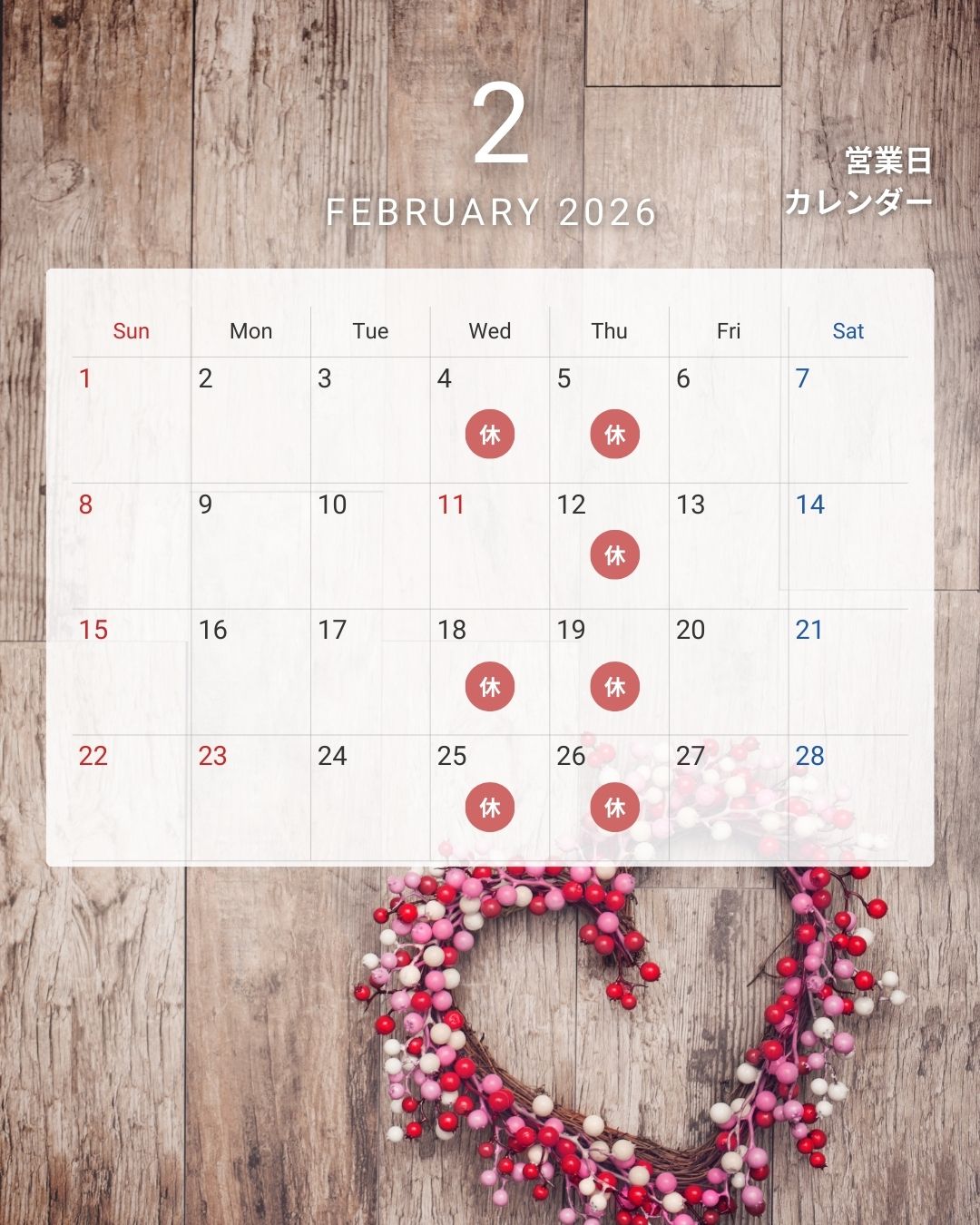 特別営業日: 2月11日(水・祝) ※通常は定休日ですが、祝日のため営業いたします。