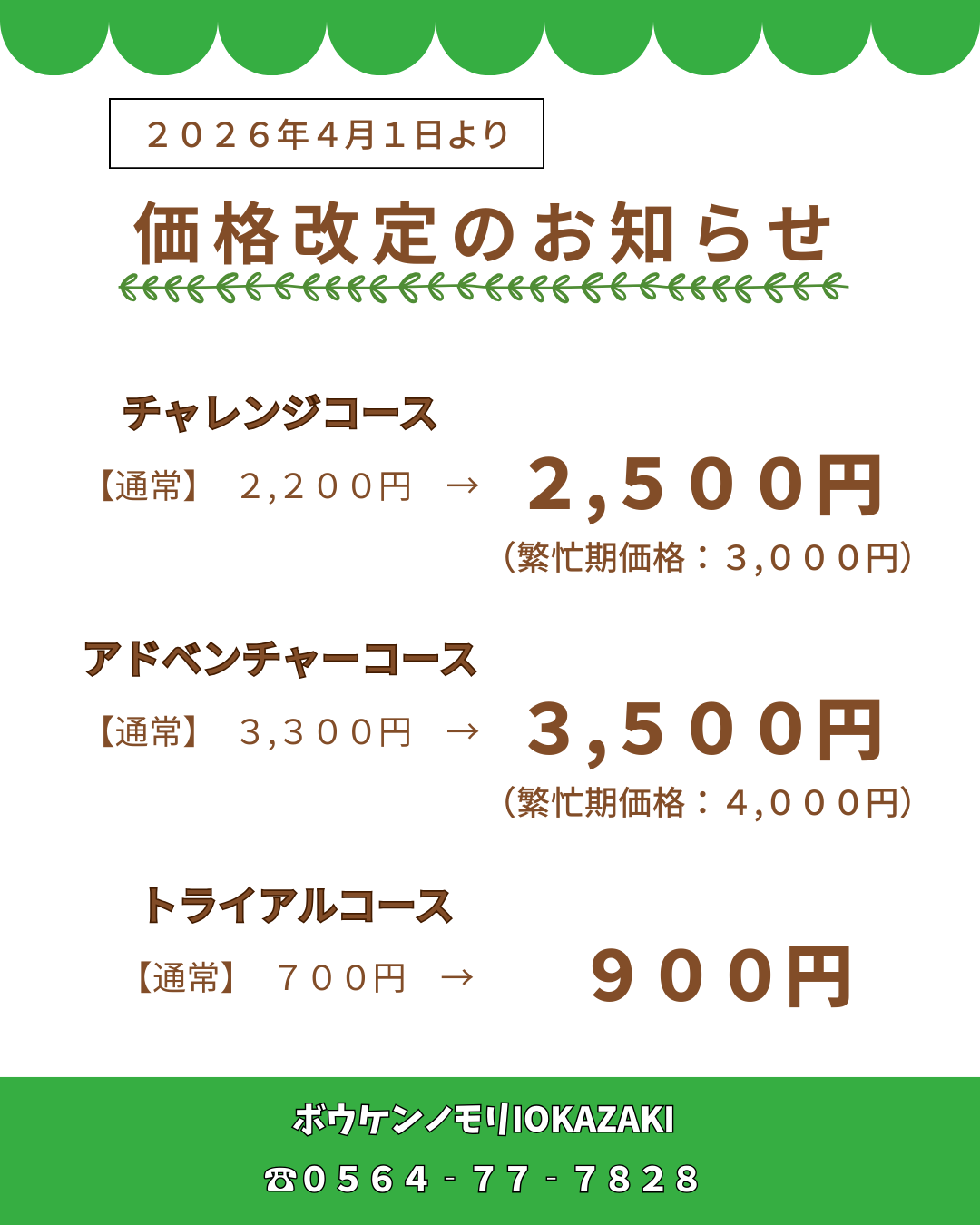 平素よりボウケンノモリOKAZAKIをご利用いただき、誠にありがとうございます。
