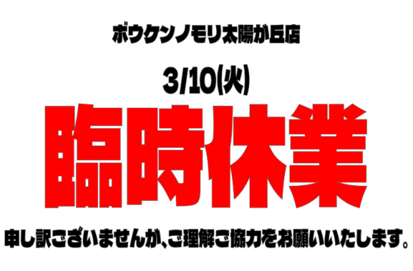 3/10(火)臨時点検のため、臨時休業とさせていただきます。お客様にはご迷惑をおかけしますが、ご理解ご協力をお願いいたします。