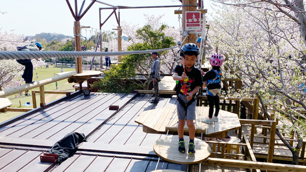 広い芝生広場を目の前に、笑顔の絶えない冒険施設。上にはお子様だけで体験可能な冒険空間、下にはゆっくり遊べる・学べる木工育空間、さらに外には樹上の大冒険が待っている! 見ている方も体験している方もドキドキとワクワクが絶えない!! また、しあわせの村内にあるため宿泊施設、キャンプ場、温泉、レストラン、公園などがありご家族・ご友人・大切な人と1日楽しんでいただけます。