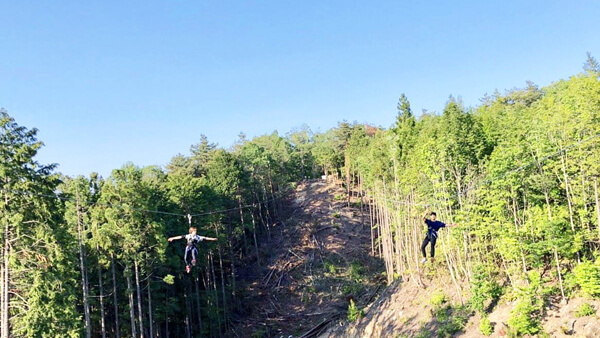 ※アドベンチャーコース・チャレンジコースと合わせて体験の場合、ペアジップライン体験料金:800円(ただし、繁忙期は通常料金になります)